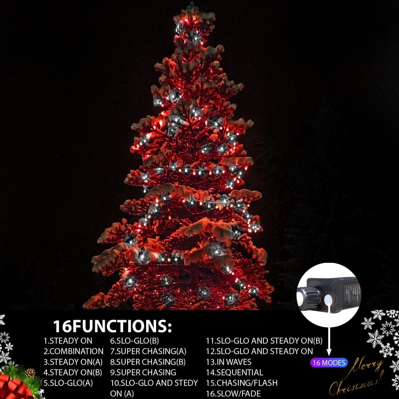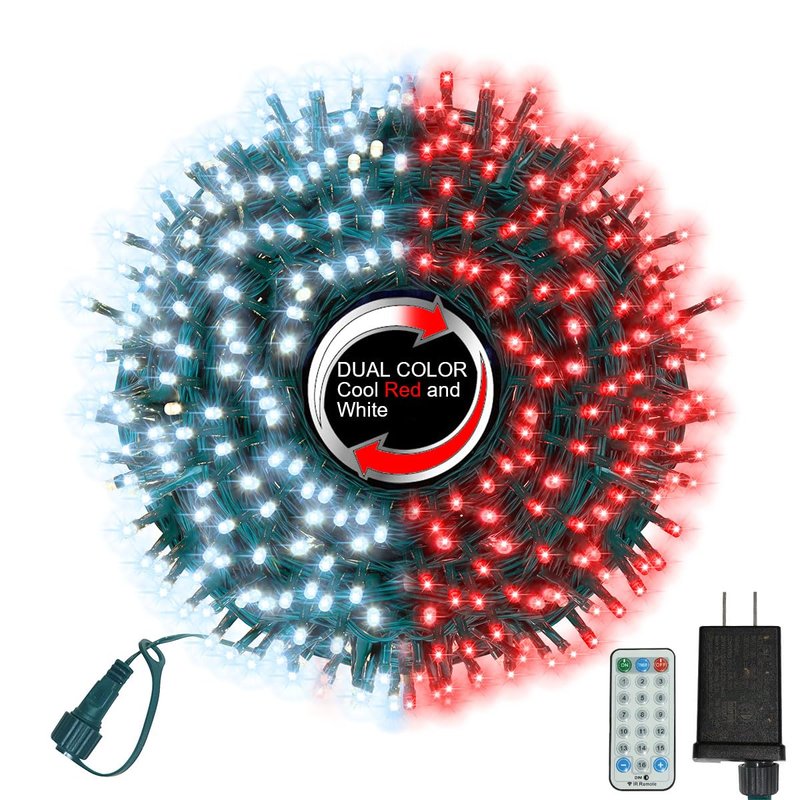 LAMPHOME 500 LED Christmas Outdoor Twinkle String Lights Extendable Holiday Decoration Lights,Plug in String Lights with 16 Functions and Timer Waterproof for Outdoor Christmas Home Holiday Party Wedding Bedroom Shows Garden (Red & White Bulb-Green Wire) Adjust the lighting modes by pressing the round button on the controller.Timer 8H(press 3 second for timer setting ON & OFF) It is a great way to add a little sparkle to your display.