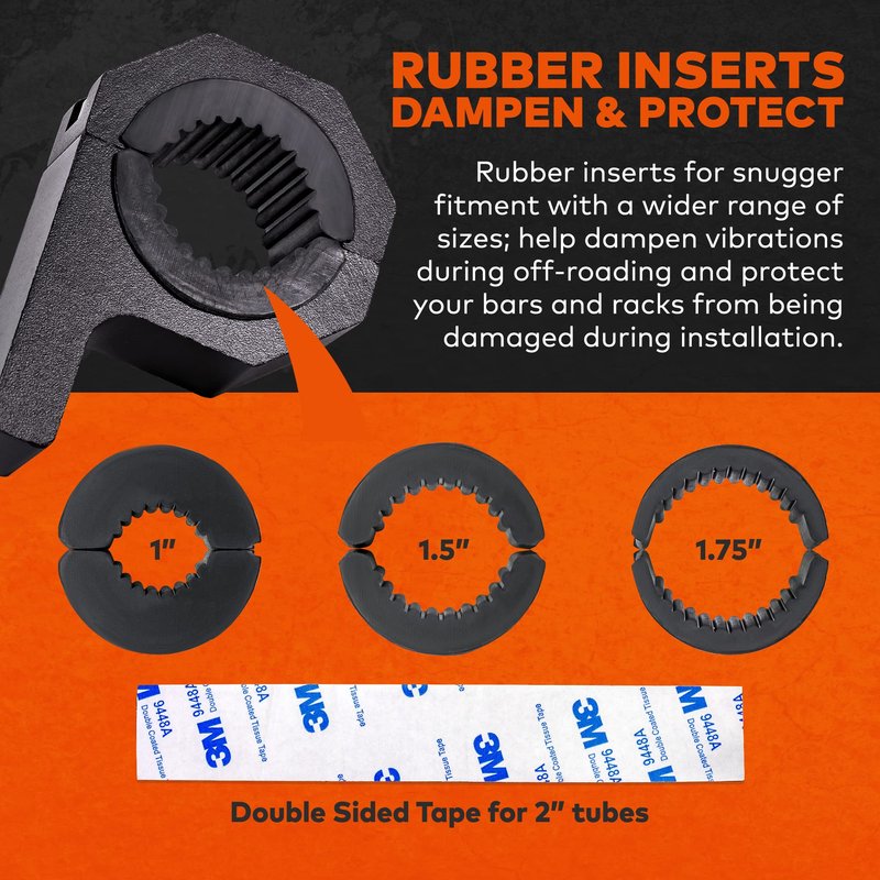 - RUBBER INSERTS DAMPEN & PROTECT- Rubber inserts for snugger fitment with a wider range of sizes; help dampen vibrations during off-roading and protect your bull bar from being scraped.