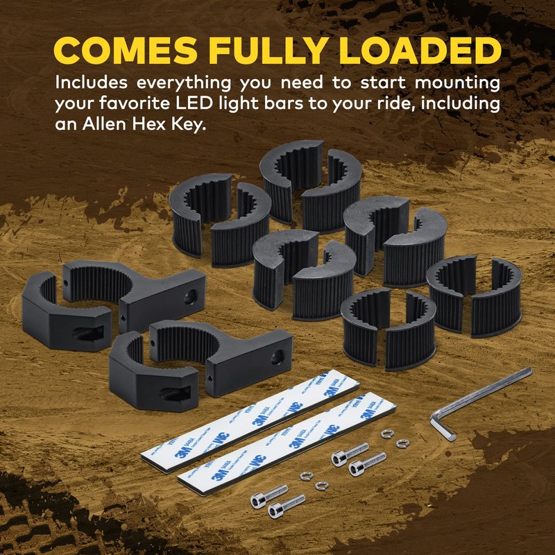 - COMES FULLY-LOADED- Includes everything you need to start mounting your favorite LED light bars to your ride, including an Allen Hex Key.