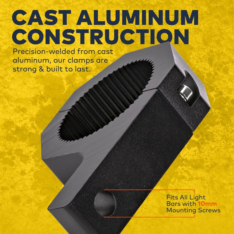 Painstakingly crafted from premium-grade cast aluminum, these clamps are designed to provide a strong, stable and secure mount for your off-road light bars. Rubber inserts are also included for a snugger fit with a larger range of tube sizes and protect your bars and racks from being damaged during installation.