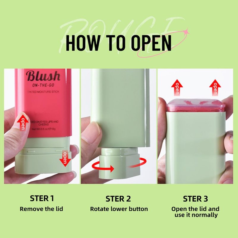 - Unique Design: The makeup blush stick adopt the design like a lipstick. You just need to pull out the cover and rotate to adjust the length. It is very convenient and portable to use due to change the traditional way of applying blush.