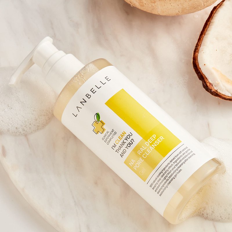 Lanbelle Deep Pore Cleanser Cleansing Gel Type Face Wash with Naturally-derived Ingredients - 7.1 Fl Oz / 210 ml - made with COCONUT Extracts, VEGAN Certified, Dermatological Tested