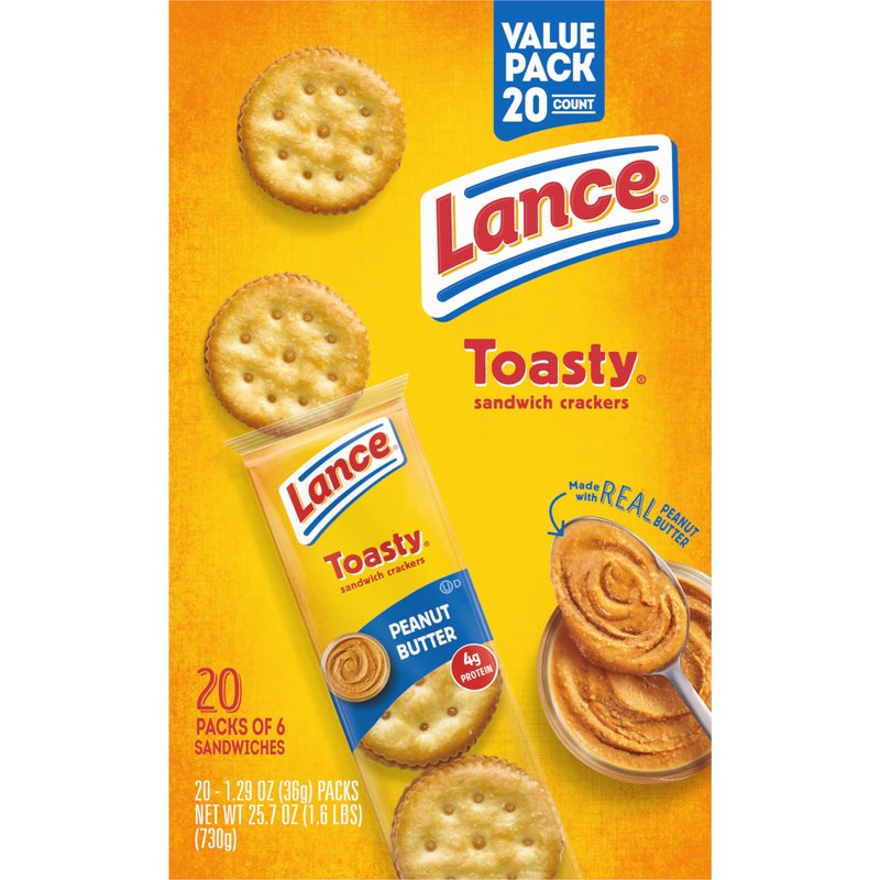 Lance Sandwich Crackers, Toasty Peanut Butter, 20 Individually Wrapped Packs, 6 Sandwiches Each