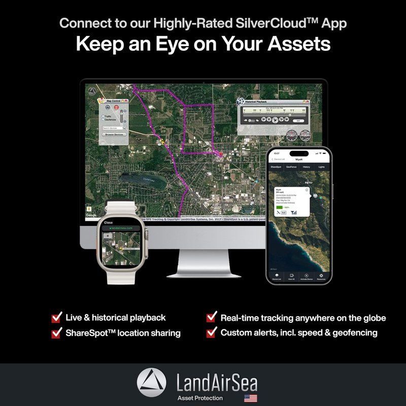 LandAirSea 54 GPS Tracker Made in the USA from Domestic & Imported Parts. Long Battery, Magnetic, Waterproof, Top-Rated App. Global Tracking. Subscription Required