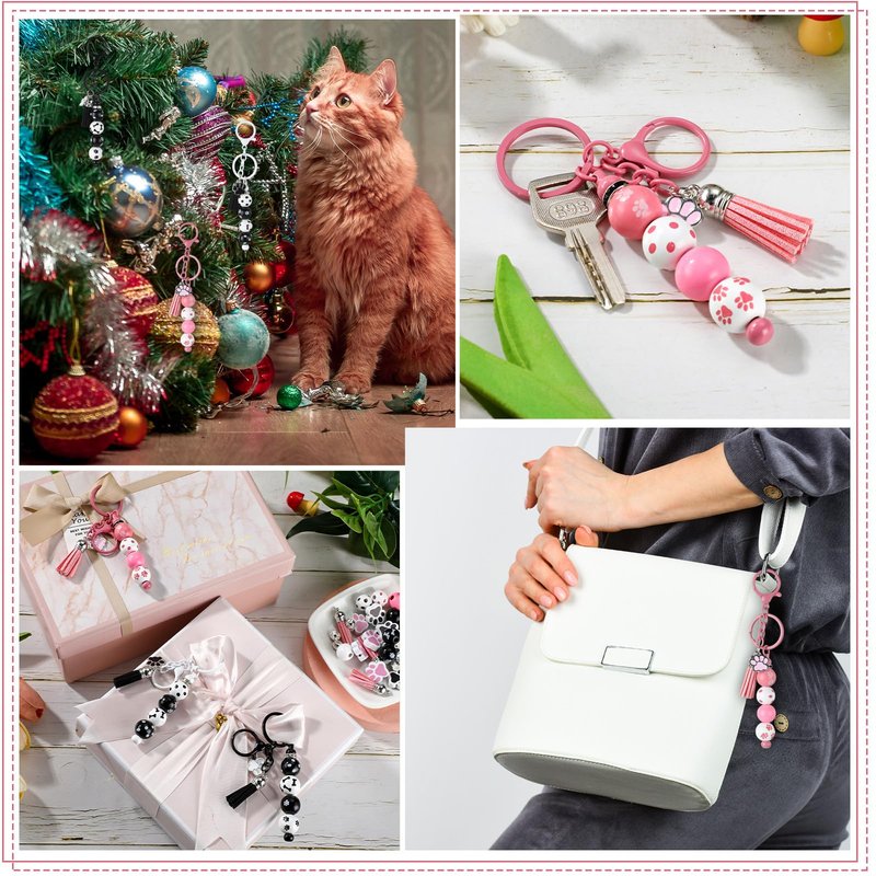 Features: The main colors of our beadable key chain making supplies are pink, black and white, classic and versatile, easy to match and can meet most people's tastes. Our beadable keychain bars bulk are light in weight and easy to carry, without taking up much space or adding too much burden. Specifications: Main material: metal, wood Color: as shown in pictures Size: as shown in pictures Package includes: 12 x Metal beadable keychain bars 44 x Wooden beads 12 x Silver headed tassel pendants 48 x Spacer beads 12 x Dog paw pendants Notes: Manual measurement, please allow slight errors on size. The color may exist a slight difference due to different screen displays. Small parts contained and choking risks may exist, please keep away from little kids.