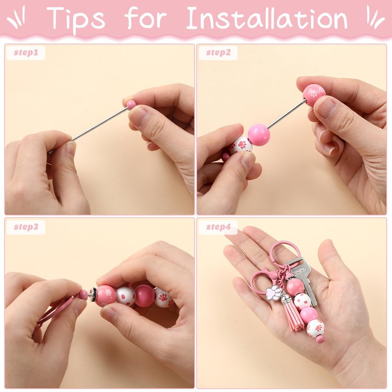 - Portable and Multifunctional: the beadable keychains are approx. 5.83 inches/14.8 cm in length, making it compact and easy to carry; If you want more than just hanging keys, it's versatile enough to hold wallets, miniatures, photos, etc.; Additionally, it can serve as an accessory and decoration for your handbags, schoolbags, car keys, and more