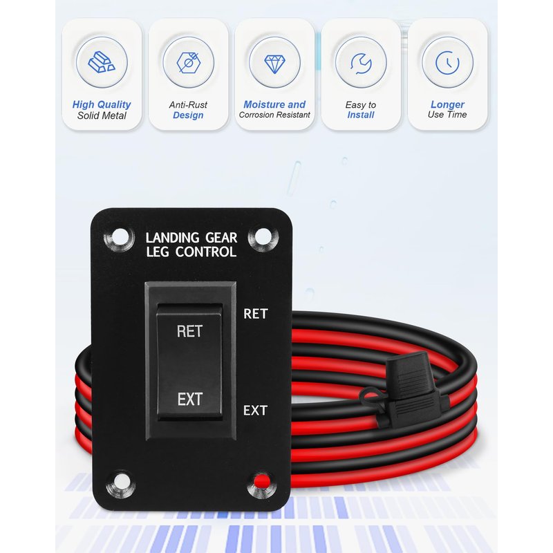 - Waterproof and Insulated: Landing gear replacement switch is equipped with a 30 amp built-in fuse, which is safe and reliable. There is also a foam weather-resistant insulating pad behind the mounting plate that is waterproof, making it easy to use even in rain or snow conditions without worrying about short circuits.