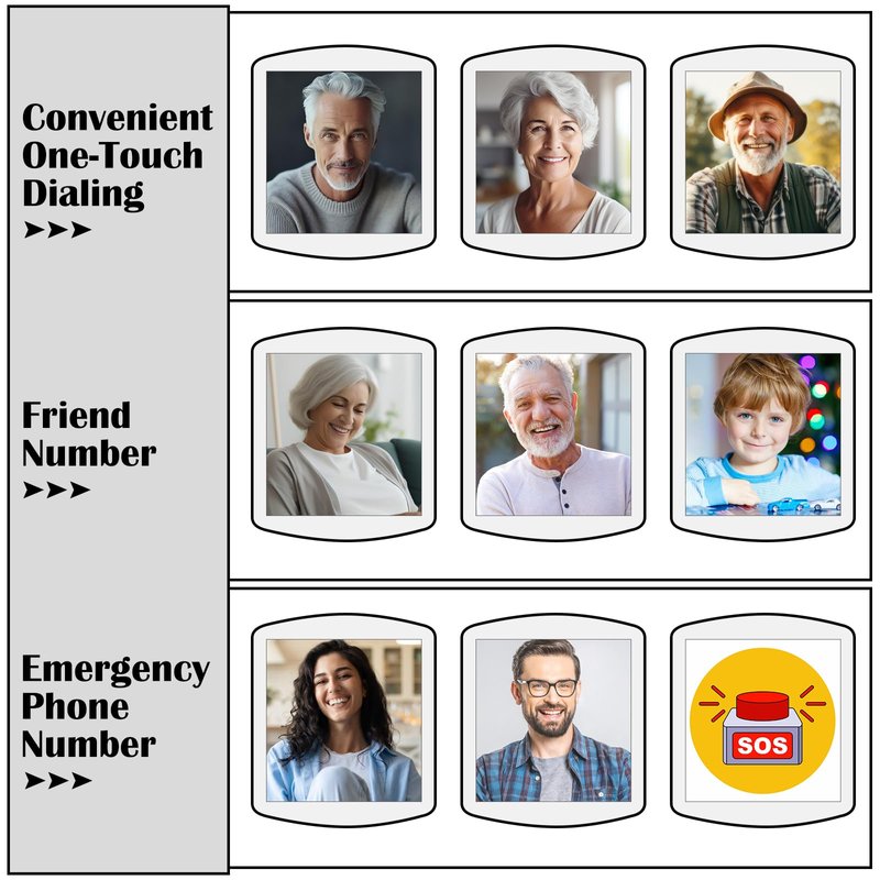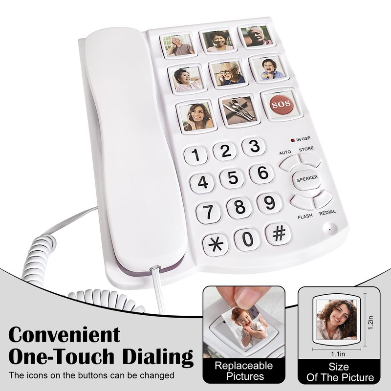 - ☎【ONE TOUCH DIALING】: The landline phone is equipped with 9 one-touch dialing buttons. Each of the 9 buttons can store numbers. The photos above can be replaced with pictures of your family or friends, making it convenient for the elderly or patients with dementia.