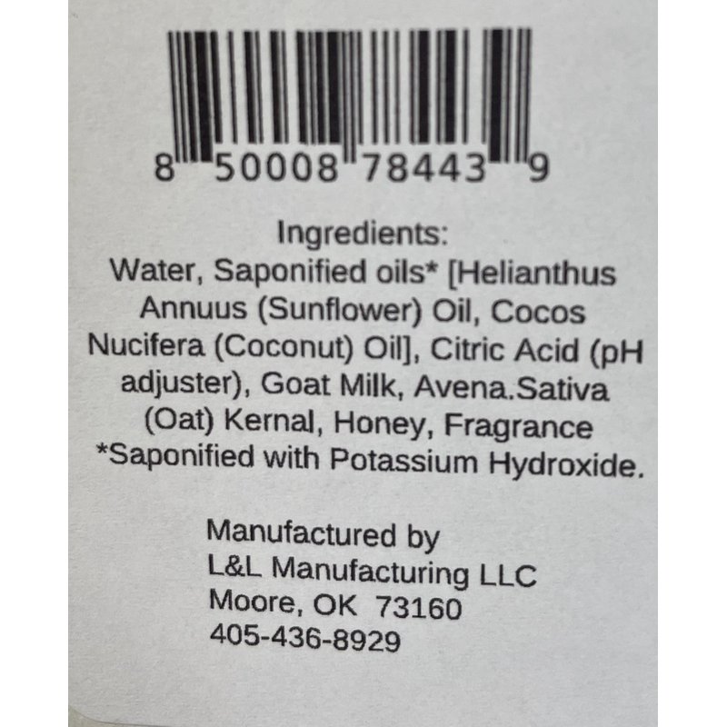 LandLSoap Oatmeal, Honey & Goat Milk Castile Liquid Soap for Face, Hand & Body Wash- Non-GMO, Made in USA, All Skin Types, Dry & Sensitive Skin 16 oz