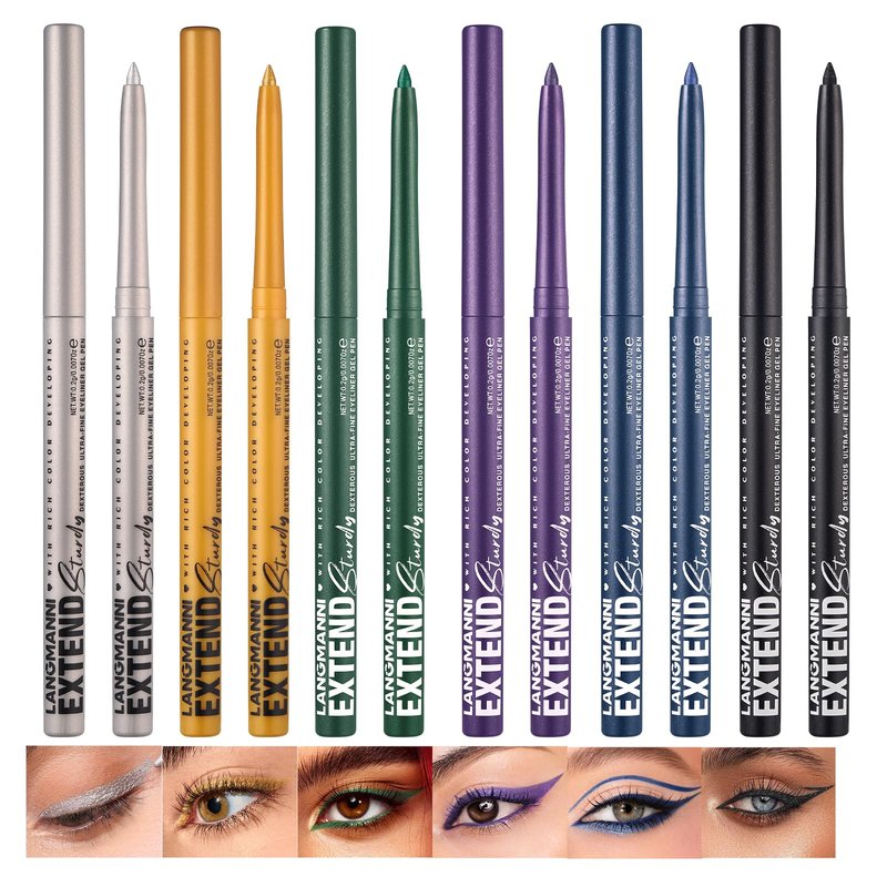 LANGMANNI 12 Metal Colorful Eyeliner Pencil Set. This versatile set comes with 12 highly pigmented shades perfect for creating eye-catching looks. From subtle to dramatic, these liners have got you covered. You can use them not only for eye makeup but also for lip and brow lining or even as an eyeshadow. With waterproof and long-lasting formula, expect vibrant color payoff that lasts all day. Treat your eyes with our shimmer, matte, and metallic eyeliners.
