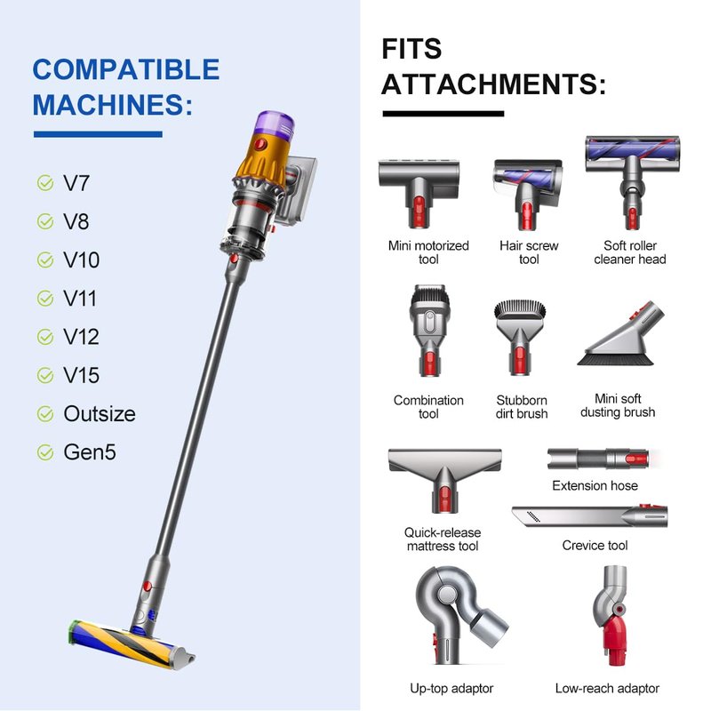 - Upgraded Design: LANMU upgraded accessory holder engineered for V12 V15 motorized tools, perfectly compatible with Dyson V15 V12 V11 V10 V8 V7 and Outsize Absolute Animal Trigger Motorhead Outsize Detect Vacuum Cleaner.