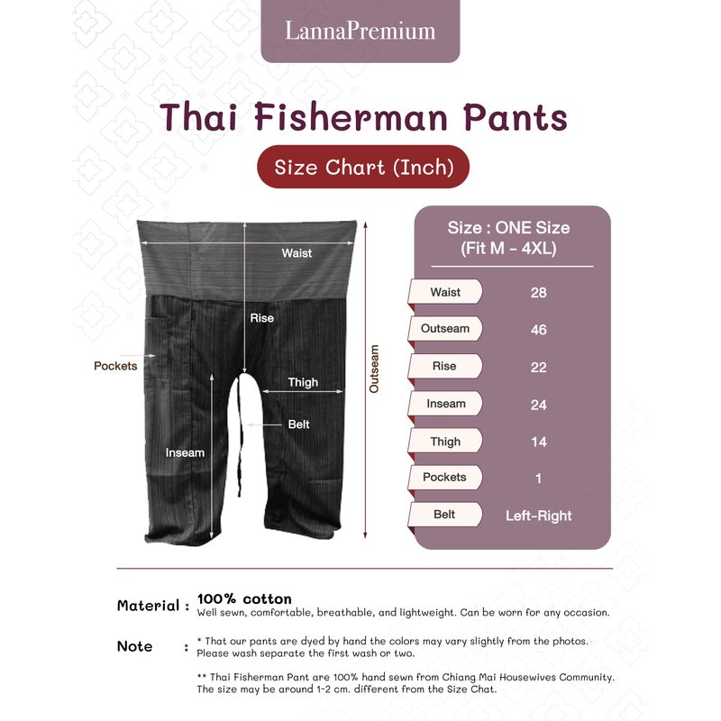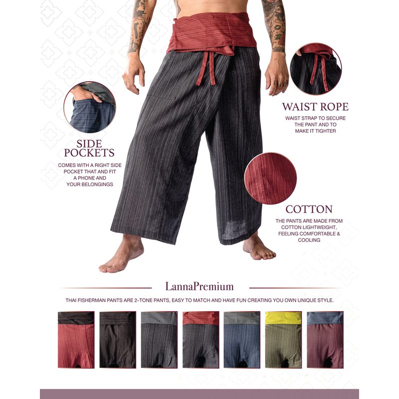 - FISHERMAN PANTS FOR ALL SORTS OF ACTIVITIES! - Thai Fisherman Pant are the most comfortable unisex pants you will ever wear. These stylish pants can be worn for any activity; great as Martial Arts Pants, Yoga Pants, or just Lounge Pants. Suitable for summer days when you need something light and airy.