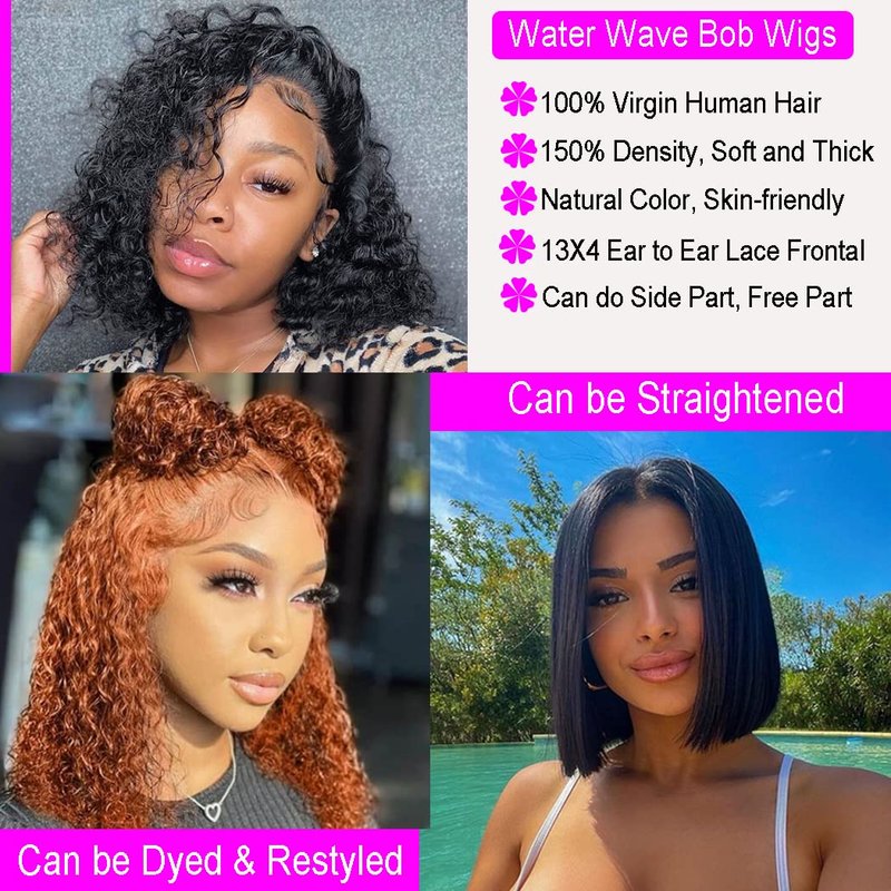 - 1. The Water Wave Bob Wig is Made of 100% High-Quality Brazilian Human Hair, Soft and Smooth, Can be Curled, Dyed, Restyled. No Shedding And Tangle-Free.