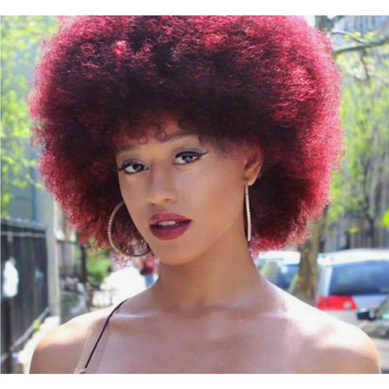 LANSHA 70s Afro Kinky Curly Wigs With Bangs for Black Women Men,Soft Wine Red Bug Color Preium Synthetic Fibers Big Bouncy Afro wigs,Nature Looking LightWeight Afro Puff Wig For Daily Party Use