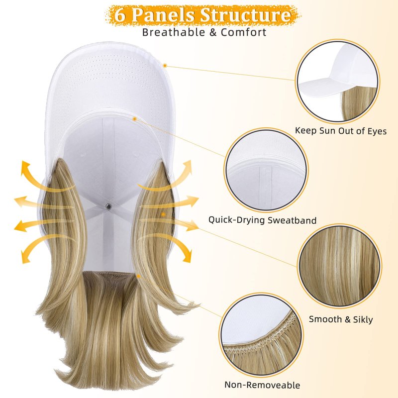 - 🌞【Create A Stylish Look】This hat with hair extensions is very nice for casual day to day wear.You don't have to worry about the sun,then go shopping or other activities when you wear this wig hat.Also,perfect for cancer patients and women with medical hair loss,it can make you confident and shinning!Also will be nice gifts for your friends and families.