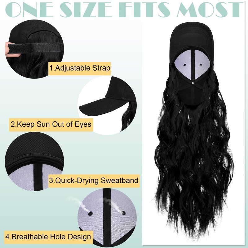 - šćAdjustable & BreathablećThe baseball cap with hair attached has a strap with magic paste to adjust the size,fits for different head size.The breathable hole design allows for moisture and heat to easily escape,which not only keeps your cool but youāll comfortable all-day long.