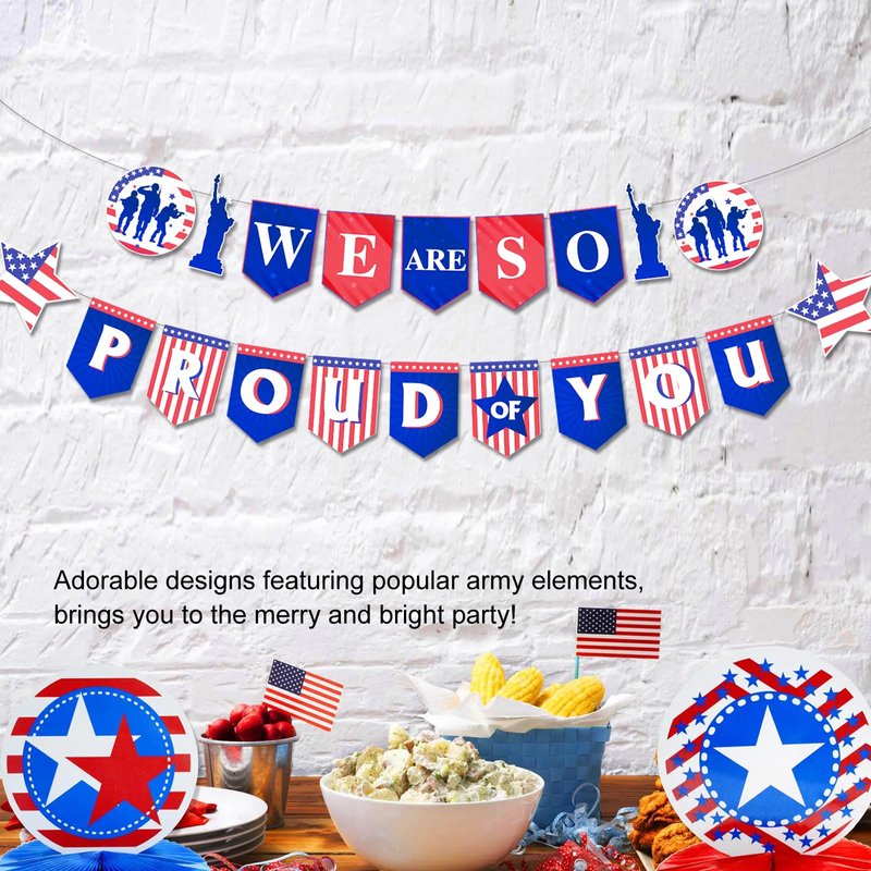 LanttAotte We Are So Proud of You Banner Army Party Decorations US Navy Military Welcome Home Decor Police Birthday/Retirement Party Banner Graduation Decorations Class of 2024