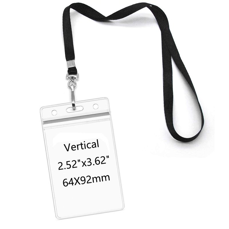 Lanyards with Id Holder Name Badges Waterproof Name tag Badge Holders with Neck Lanyard Swivel J-Hook Clip 50 Pack (Black, Vertical)