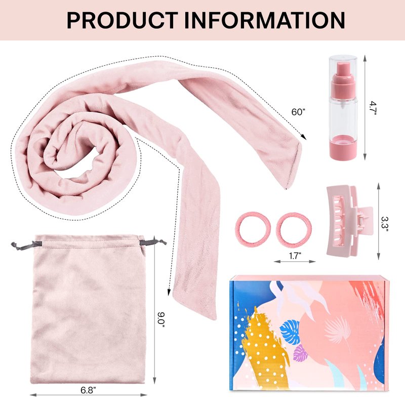 Lanzhire Heatless Hair Curler for Long Hair Curls (Pink)