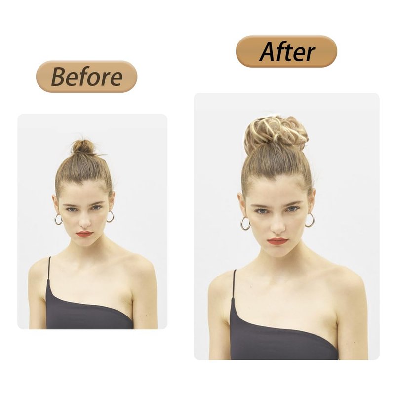 - Usage Tips: When using this hair bun piece, make sure to secure your natural hair in a bun or ponytail first.Then, position the hair bun piece over your existing hairstyle and use the elastic tie to adjust and secure it snugly.You can also use bobby pins or additional hair accessories to ensure a secure fit.