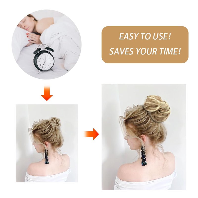 - Adjustable Design: The curly bun comes with an adjustable elastic hair tie that fits comfortably and securely on most heads, ensuring that it stays in place without being noticeable.