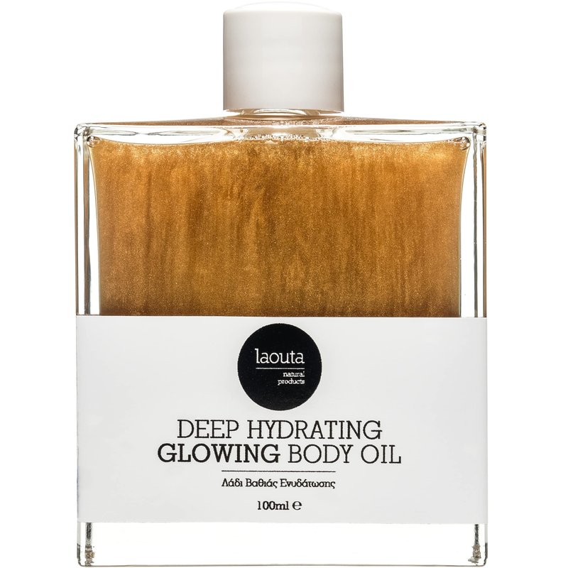 LAOUTA Shimmering Bronze Body Oil – Geranium & Grapefruit – Formulated w/Nourishing Natural Oils: Olive, Almond & Apricot – Body Highlighter Oil/Shimmer Oil Body (3.38 Fl oz)