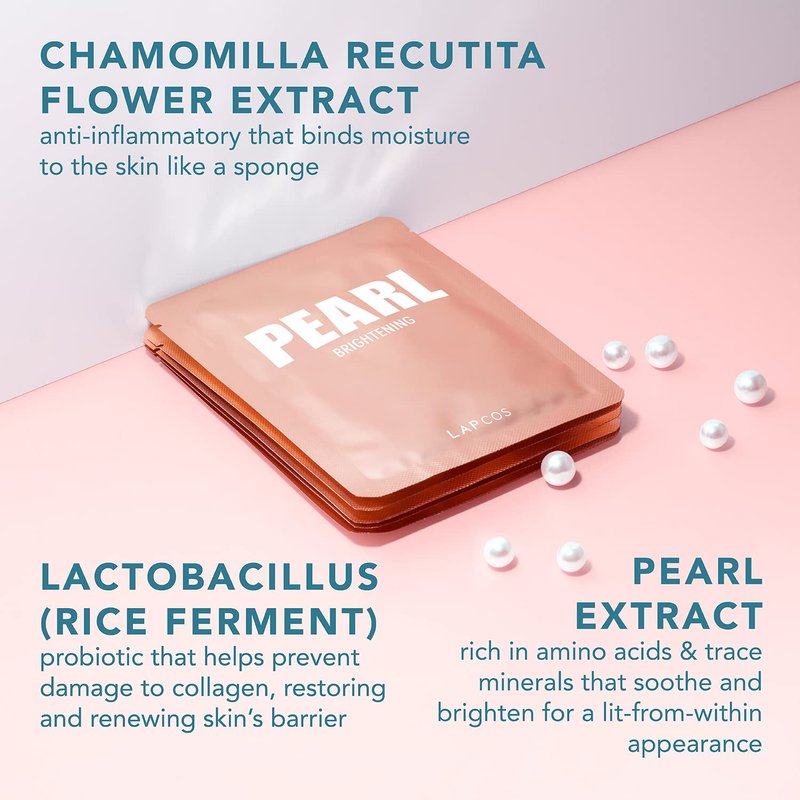 LAPCOS Pearl Sheet Mask, Daily Face Mask with Probiotics to Brighten and Clarify Skin, Korean Beauty Favorite, 5-Pack