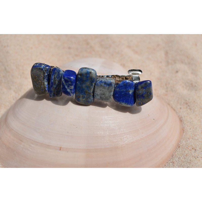 Pretty lapis lazuli french barrette, the stones have a gorgeous blue coloring. The stone french barrettes adorned with small lapis lazuli stones. The lapis lazuli hair clip is the perfect accessory for a night out, and can dress up an outfit or be used for a special event, like a quinceanera, first communion, or even a wedding. The hair clip is hand made in the USA and come from a smoke free environment The Lapis Lazuli hair clip measure: 61 mm x 16 mm x 15 mm or 2.4 inches x .6 inches x .57 inches LAPIS LAZULI Stone Name: Lapis Lazuli Stone Specifics: Stone of Royalty / The Stone Before Time & Total Awareness Stone Color: Royal Blue to Dark Blue Stone Origin: Lapis has been highly valued for many thousands of years. It was said to impart ancient knowledge, and the wisdom to use it thus enhancing one’s awareness, insight, and intellect. Legend tells us that Lapis has been loved by the ancients, from Mesopotamia, to Egypt, Persia, Greece, and Rome. The ancient city of Ur it is told had a thriving trade in Lapis as early as the fourth millennium B.C. Hardness: 5.5 - 7 Magical Powers: ~ Amplifies and attunes one's thought patterns ~ Stimulates the innate, higher mental faculties ~ Energetically provides pyschic protection ~ Enhances intuition, psychic abilities and spiritual awareness ~ Assists in speaking of and discerning of truths ~ Elevates meditative journeys and insights ~ Promotes inner realization and reflection, expanding awareness of beliefs and bringing clarity to mind Chakras: Throat (5th) Third Eye (6th) Element: Wind Composition: Sodium Aluminum Silicate Part# 50907
