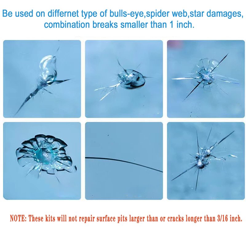 - Safely & Widely Use: this repair resin is 100% safe to use. It’s suitable for all types of laminated windscreen chips and cracks repairment, such as loophole, cobwebs, bulls-eye, half-moon cracks, star-shaped damage, long line crack/scratch and combination damage.