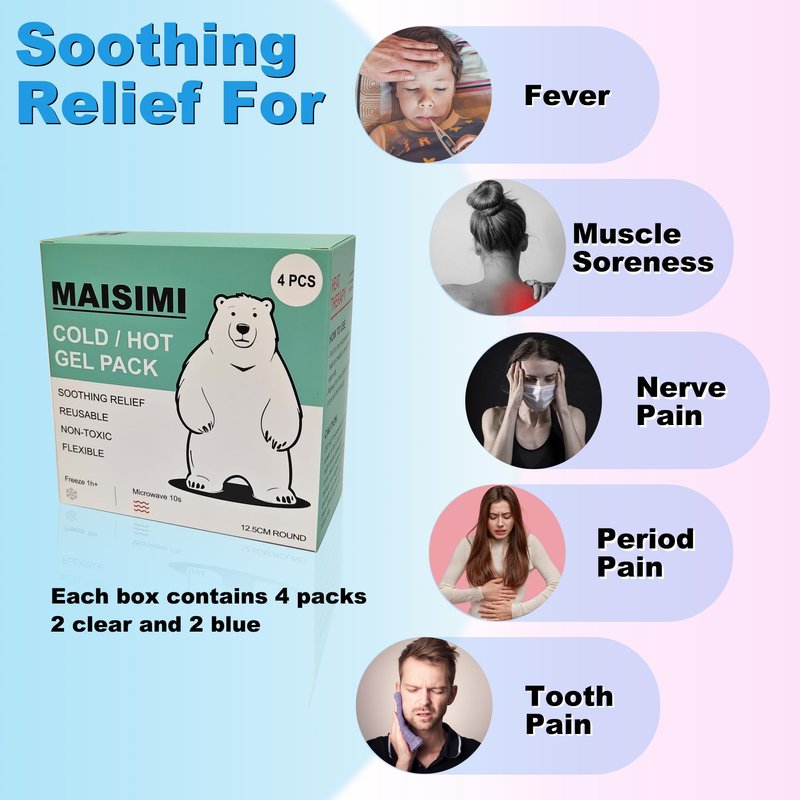 - For All Ages and Versatile Use: Suitable for toddler, kid, adult. Cold therapy for fever, headache, muscle soreness, wisdom teeth etc. Heat therapy for Period pain and breastfeeding discomfort etc. Polar bear image, good as boo boo ice packs for kids