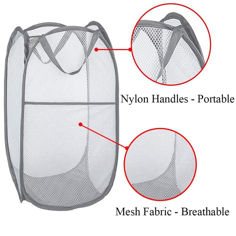 Larpur Popup Mesh Laundry Basket, Collapsible Laundry Hamper Portable Clothes Washing Laundry Hamper with Reinforced Carry Handles for Home, Dormitories, Travel, Apartments (Grey)