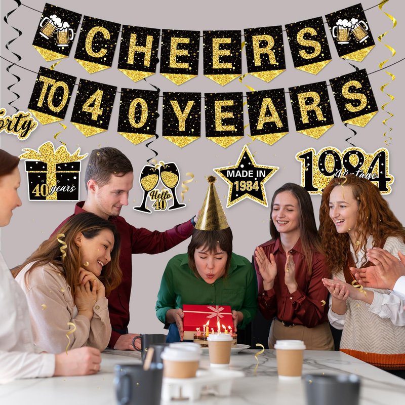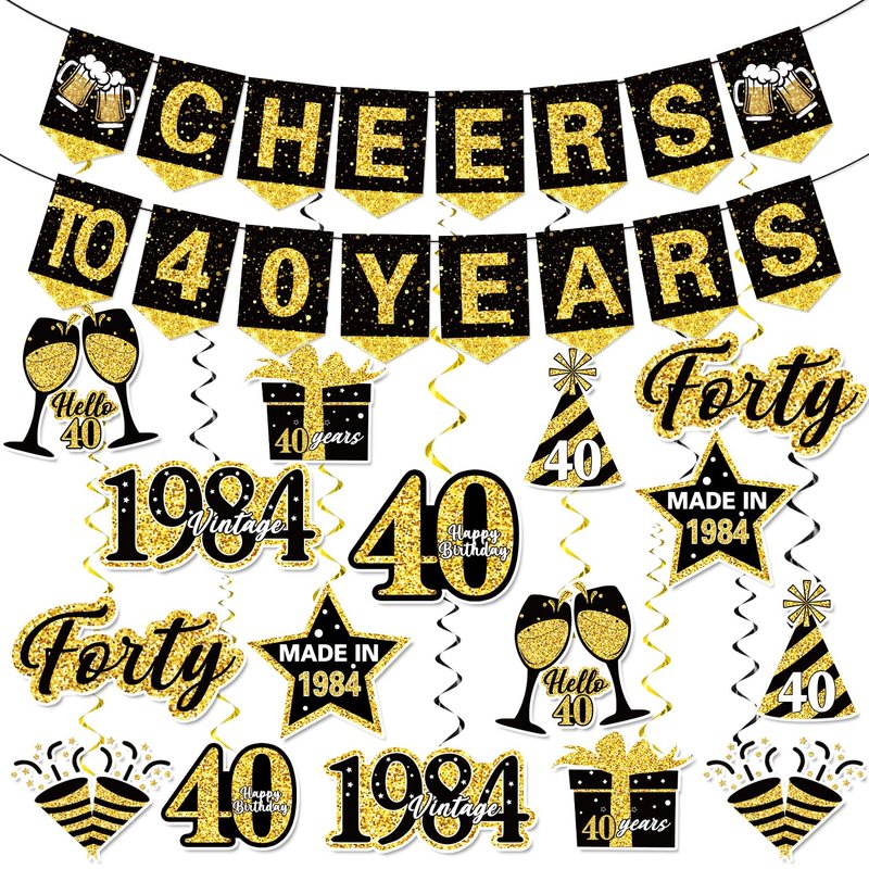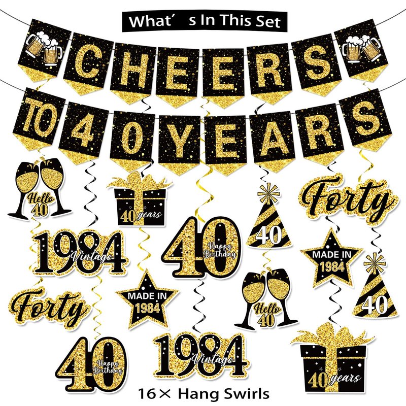 - 【WHAT YOU WILL GET】You will get 1pc CHEERS TO 40 YEARS banner and 16pcs hanging swirls. This amount is enough for you to decorate your party. Shine for your 40th birthday party, add a touch of classy decorations and welcome your guests to your party