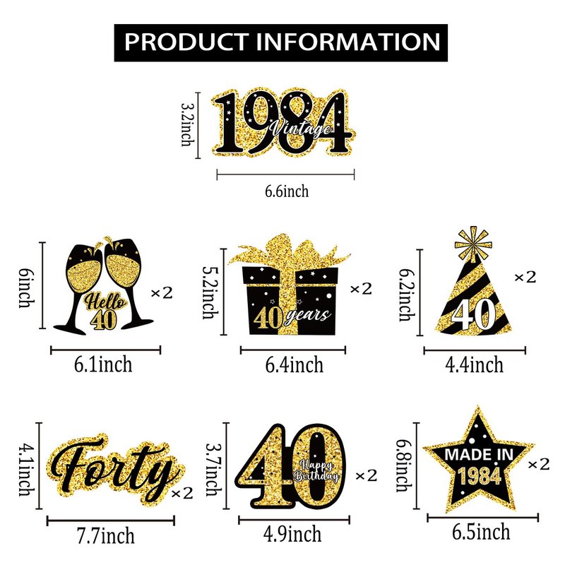 - 【VIBRANT SHINY DESIGN】Our 40th birthday cards are designed in black and gold. The pattern includes "Vintage1984", "40 Happy Birthday", "Made in 1984", "Forty", and so on. We also use a variety of birthday theme patterns including stars, wine glasses, gifts box, windmills, etc