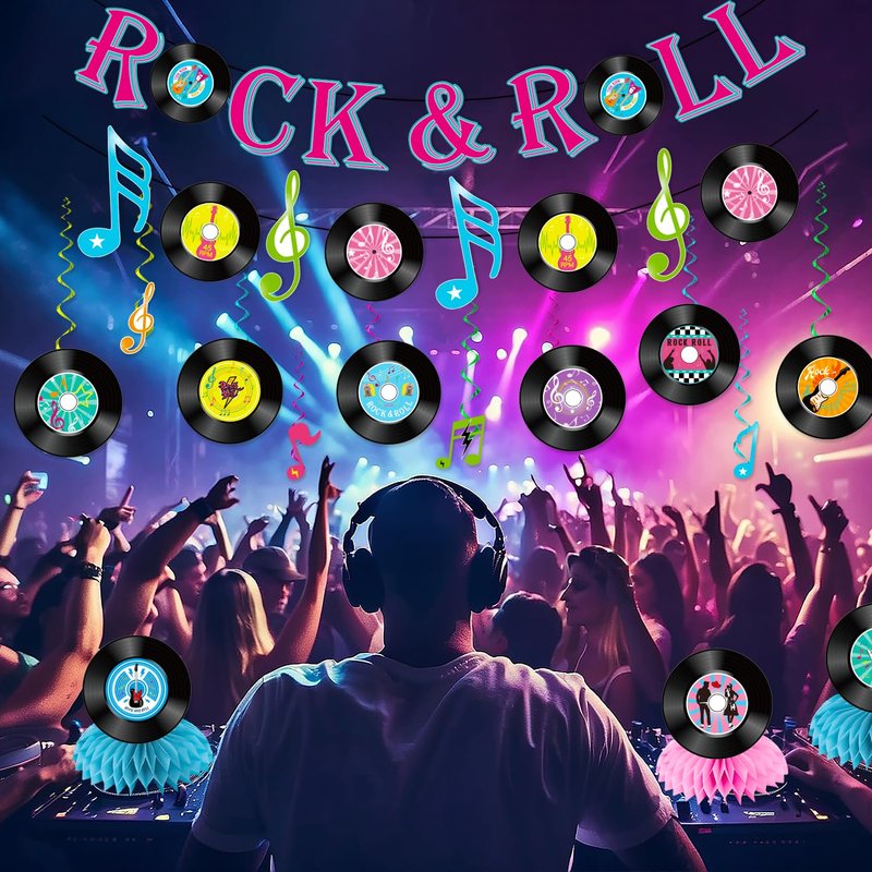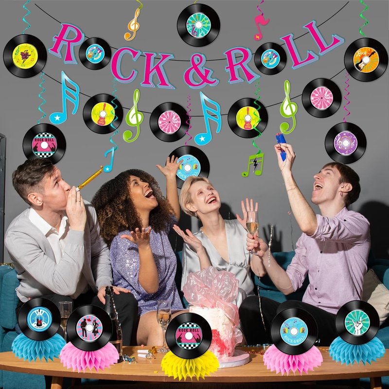- 【PACKAGE INCLUDES】Music themed party decorations includes 1pc rock and roll banner, 9pcs hanging swirls and 5pcs honeycomb centerpieces. They will accentuate your party style and add to the party vibe, and they'll be a fun and attractive addition to your party