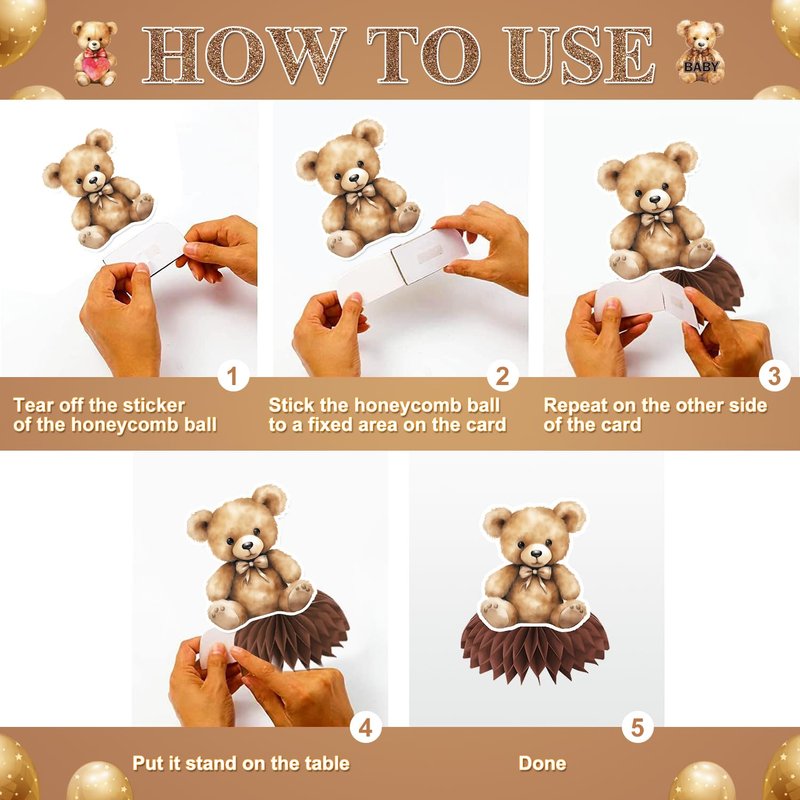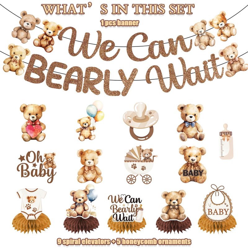 - 【ALL-IN-ONE PACKAGE】Get everything you need for a perfect baby shower with our bear-themed decoration set, including a bear banner, hanging swirls, and honeycomb centerpieces