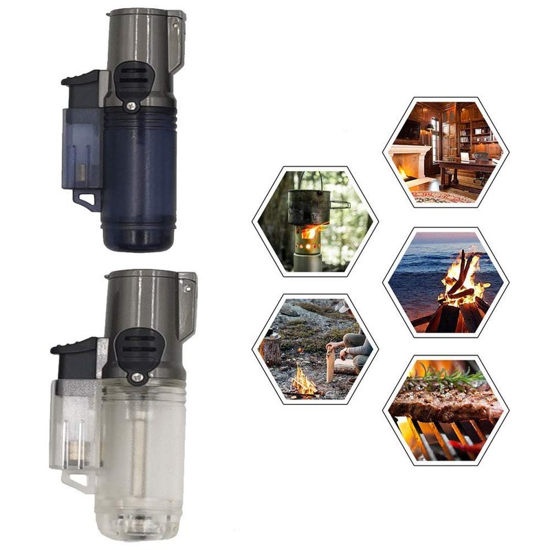 Larruping Outdoor Jet Torch Lighter Windproof Turbo Triple Flame Gas Butane Visible Window Refillable Cigar Cigarette Torch Lighter 2 Pack (without fuel)
