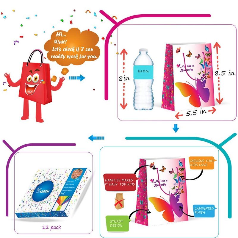 LARZN Premium Butterfly Party Bags, Party Favor Bags, New, Treat Bags, Gift Bags, Goody Bags, Party Favors, Party Supplies, Decorations, 12 Pack