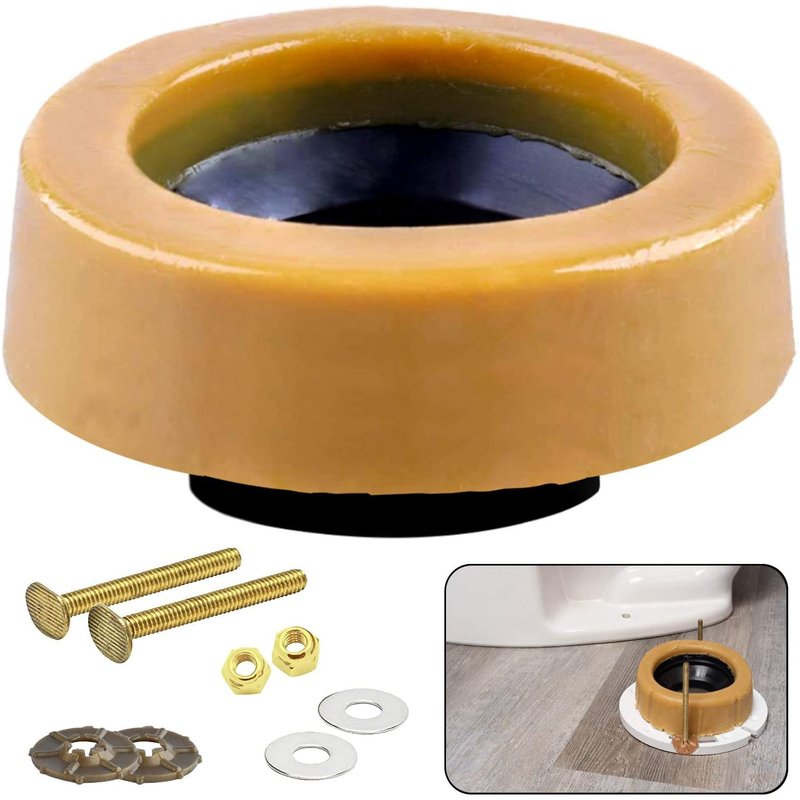 LASCO Toilet Bowl Extra Thick Wax Ring with Brass Bolts Reinforced Urethane Core and Polyethylene Flange - 516545 , Yellow