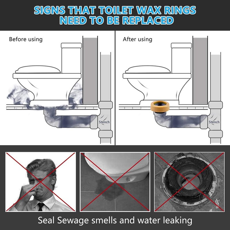 - Forms a gas, odor and water tight seal between toilet bowl and waste line