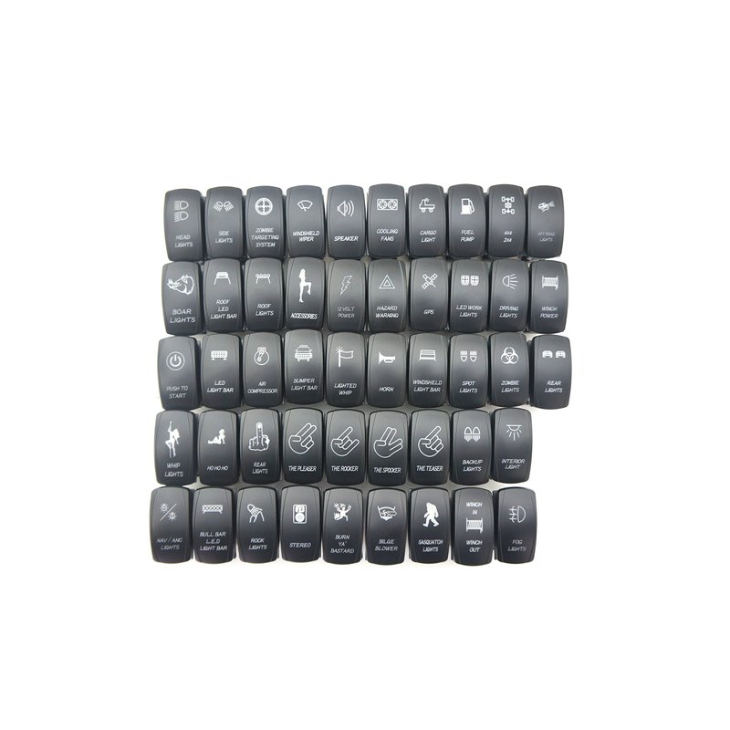 - All symbols are laser etched directly onto the switch face to ensure long image life.