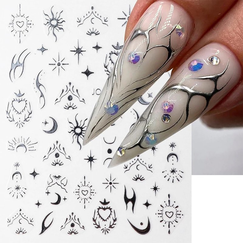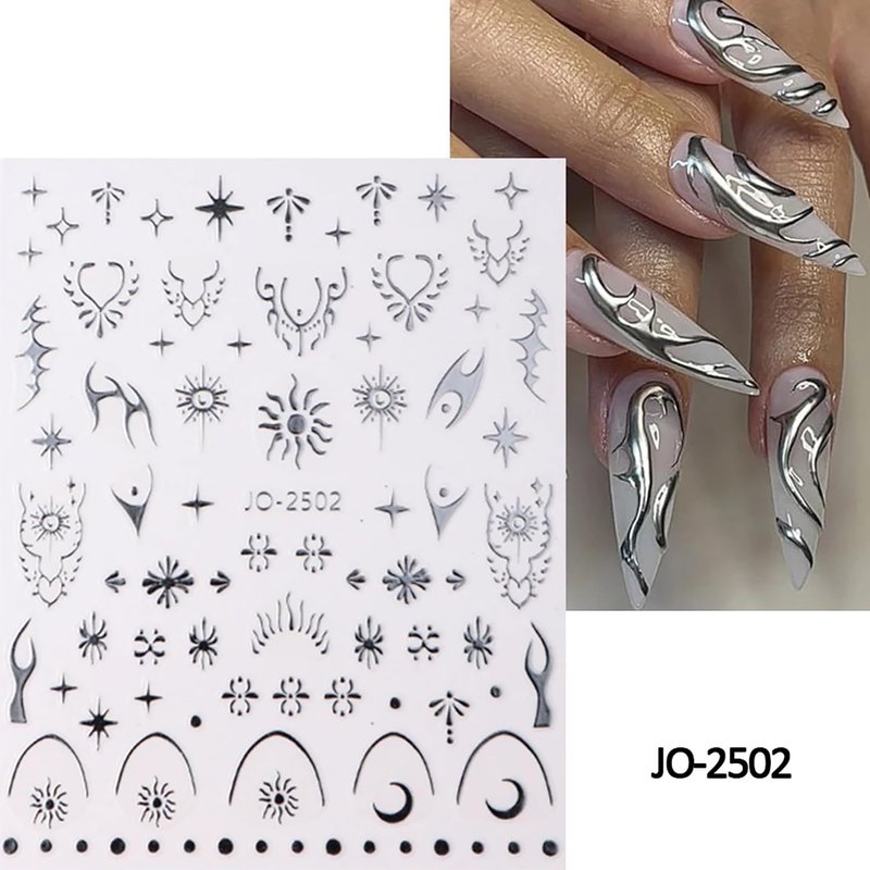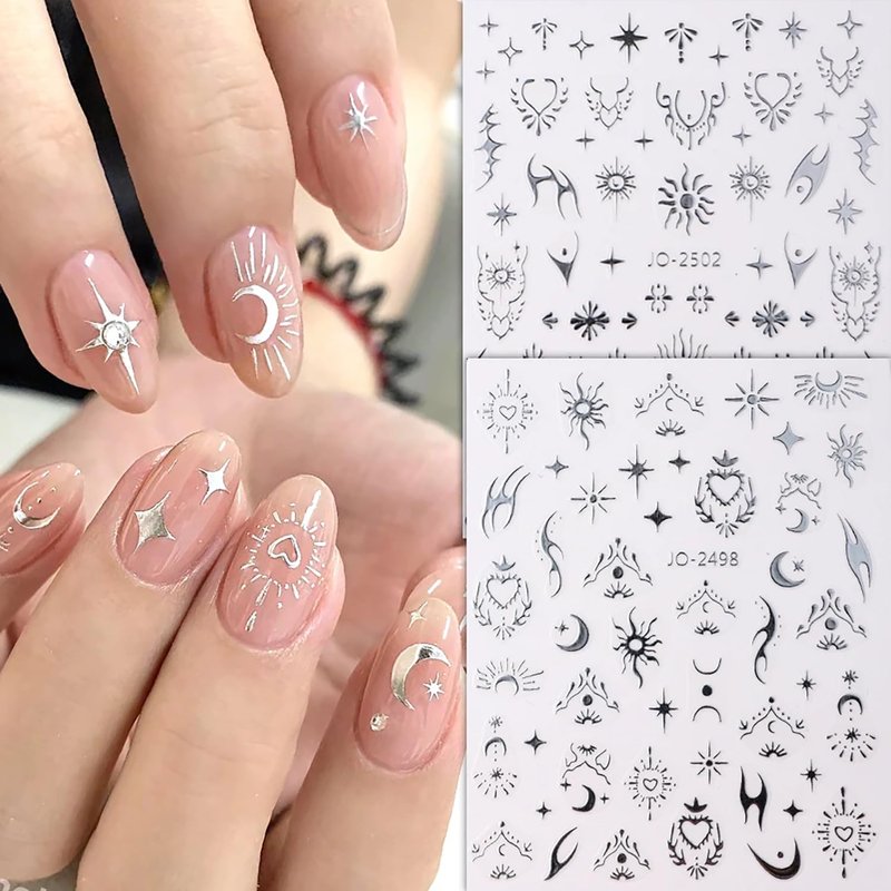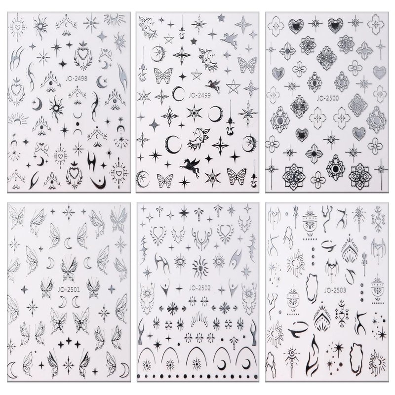 - 【Package Contain】You will get 6 sheets laser silver nail stickers, each sticker contains a different pattern for you to use and replace in daily life. Silver stars, sun, moon, butterfly, flower, flame, horse pattern design etc.