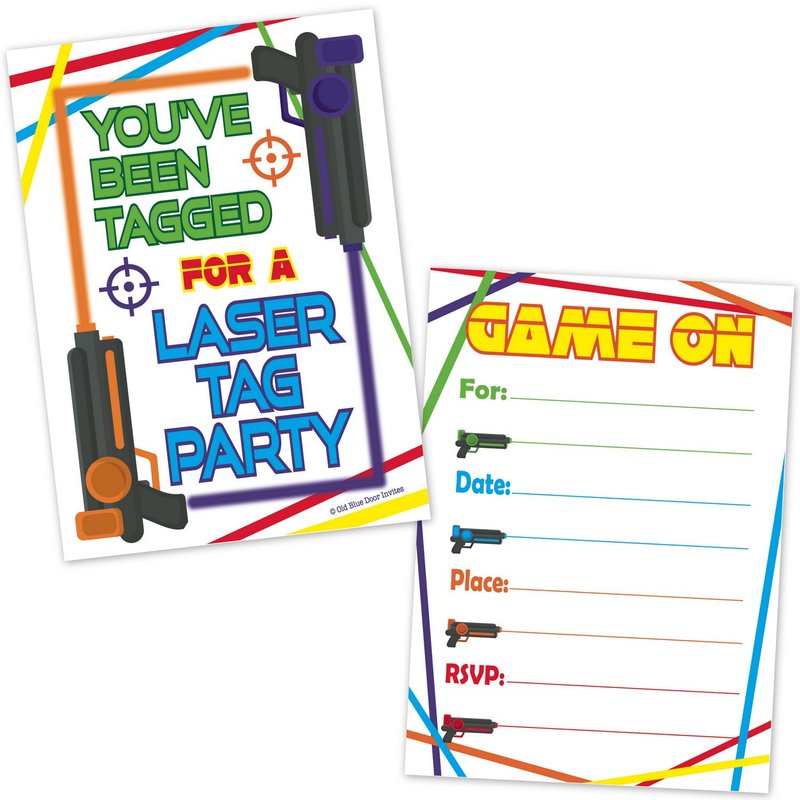 Laser Tag Birthday Party Invitations (20 Count with Envelopes) - Kids Party Invites for Boys and Girls - Laser Tag Party Supplies