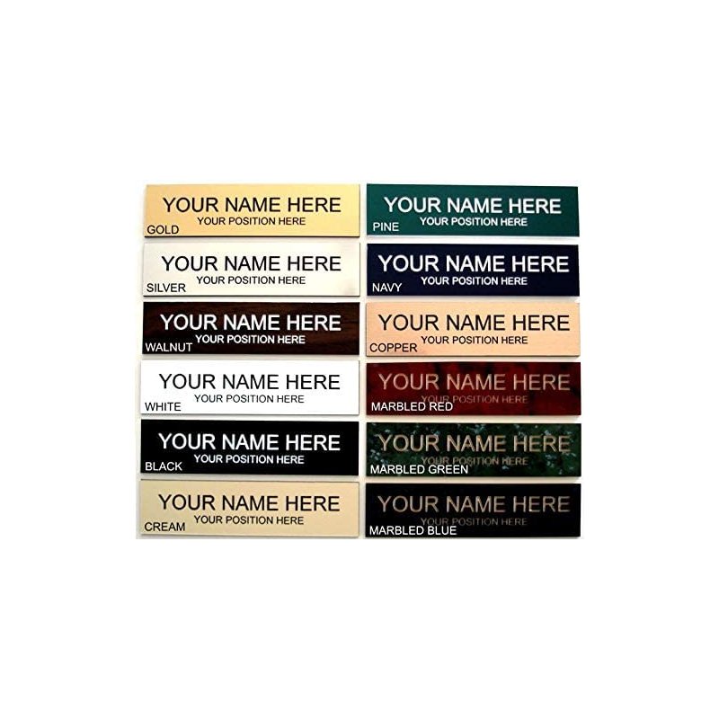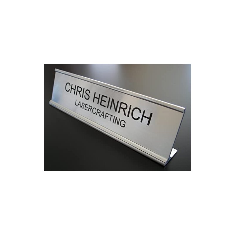 Beautiful laser engraved name plate with your choice of color and font. Includes holder of your choice, either desk or wall/door mount. Customize now!