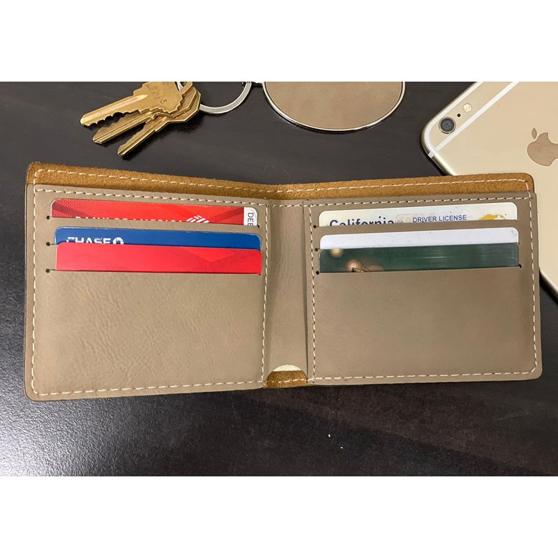 - Each wallet is laser engraved with the image that you see in the photo along with your own name or custom text.