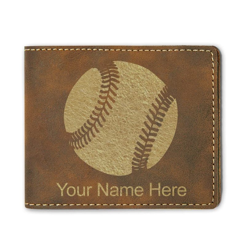 LaserGram Faux Leather Bi-Fold Wallet, Baseball Ball, Personalized Engraving Included (Rustic)