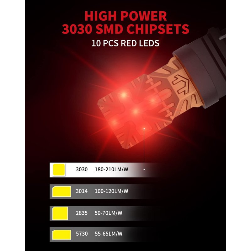 - 【300% Brighter than halogen】Using newest high power 3030 SMD LED chips and full 360-degree illumination, LASFIT 3157 led bulbs with only 10pcs chips can produce peak brightness output, giving you a clearer and wider visibility to ensure safer driving at night