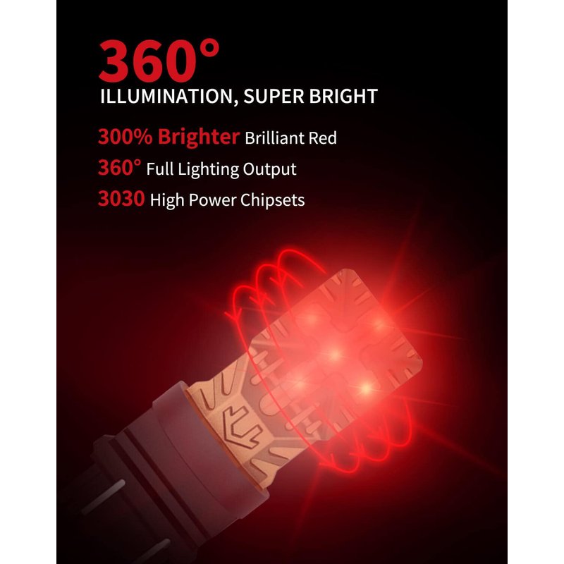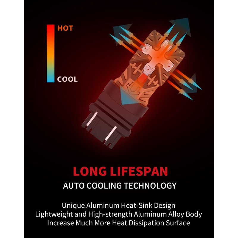 - 【3,0000 Hours Lifespan】LASFIT 3157 brake light bulbs are built of lightweight and high-strength aluminum alloy to ensure its efficient cooling performance, with much more surface to dissipate. 3157 bulbs can provide continuous white light. Perfectly solve the light fading or overheating of led bulbs.