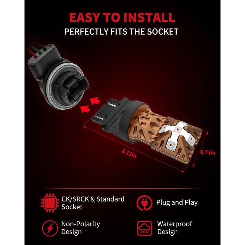 - 【5 Minutes Quick Installation】 3157 tail light bulbs are almost 1:1 design as halogen, designed to directly replace your factory halogen lamp with no polarity , plug and play. Compatible for both CK/SRCK and standard socket.