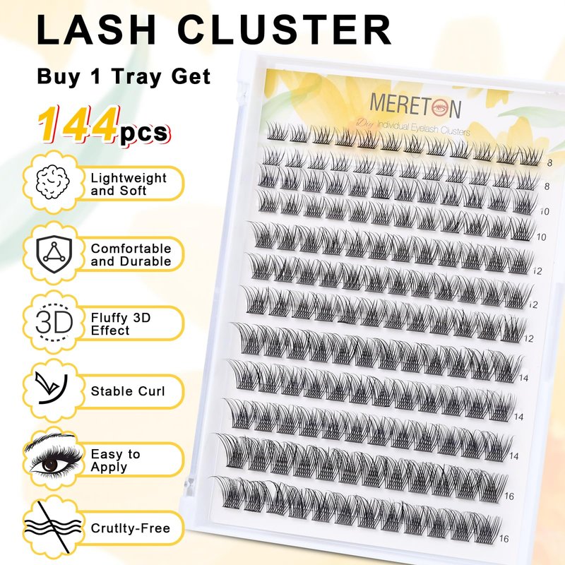 - 【Easy to Use】MERETON cluster lashes are perfect for beginners to wear at home without any professional skills, you can DIY according to your need. It only takes a few minutes to have attractive eyes with thick lashes.