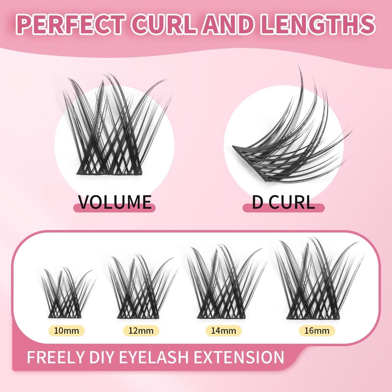 - 【Comfortable & Stress-free All Day】The lightweight experience of 0.3 mm ultra-fine lashes ensures that wearing our cluster lashes will not burden all day. The comfort of the eyelashes is very important, and the eyes reflect your energy. The perfect D curl also blends seamlessly with your natural eyelashes.